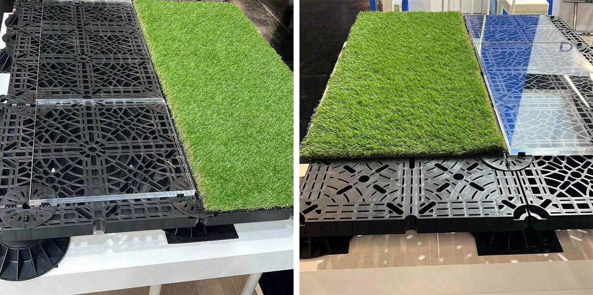 The system is designed to be mounted on any adjustable paving pedestal from the StrataRise range, thus offering the possibility to create floating floors at any required height, even on sloping surfaces. When used with the Hercules 3000 series pedestals all levelling adjustments can be made from above using a special adjustment key.